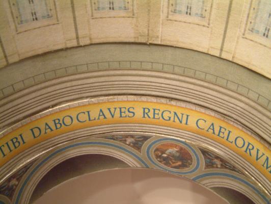 It’s an awesome feeling when one enters the gigantic ellipse comprising St. Peter’s Square which opens up to a bright and wide area right in front of the visitor’s eyes (273 resp. 226 m in diameter). In the center of the Square, a huge obelisk framed by two mighty spouting fountains towers out of the ground; Emperor Caligula had once brought this obelisk from Alexandria in Egypt to Rome by ship and had it erected in his circus, the coliseum. According to bible records, the obelisk witnessed the execution of the apostle St. Peter and his followers. More than 140 larger-than-life size holy sculptures stand on the 15 m tall colonnade of Bernini. The colonnade is wide enough so that two cars could easily pass through it. Your attention is now drawn to the Basilica and the facade Carlo Madernas which bluntly separates the Square from the Basilica actually giving you more of a palatial impression. The massive structure of the facade with its columns and pillars reaching over two floors is very striking, as are the entrances, the balconies and the windows. It is the middle balcony on the second floor from where the Pope pronounces the papal blessing on important Christian holidays “Urbi et Orbi”, for the city and the world. It is also the place from where the name of the newly elected Pope as well as a canonization or beatification are publically announced. On top of the facade stand two 5.70 m high statues portraying Christ and the apostles.