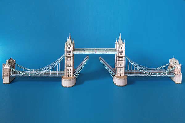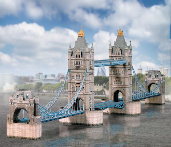 This model takes us to England. The Tower Bridge in London must not be missing among the world famous buildings. The side parts are very elegant, the middle part can be lifted (see photo below). It is very impressing with its complete length of one metre.