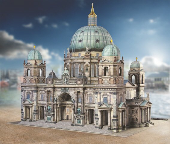 The present Berlin Cathedral was built in the years 1894 – 1905 near the former Berlin City Palace and Park. Emperor Wilhelm II had given the orders for it. The representative building in the style of the Italian High Renaissance was not undisputed because of its splendid ornamentation and over-dimensional measurements. The building had an overall area of about 6,270 m². The length of the church was about 114 m. The dome in the middle of the church also towered up about 114 m. The church was divided into three areas: baptismal and wedding church, sermon church and monument church, where among others, the treasures and monuments of the Hohenzollerns, the Emperor's family, were to be found. In addition the church was subdivided into three levels: the crypt, the church interior and the tower and dome level. The inner walls and outer façades were richly painted with scenes from the New Testament and from the time of the Reformation. The Hohenzollerns justified these over-dimensions with their gratitude for divine grace. In addition, Emperor Wilhelm II described the building as being the "central building of Protestantism".