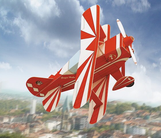The fire-red double-decker aeroplane is meant for children and beginners and is very easy to build.