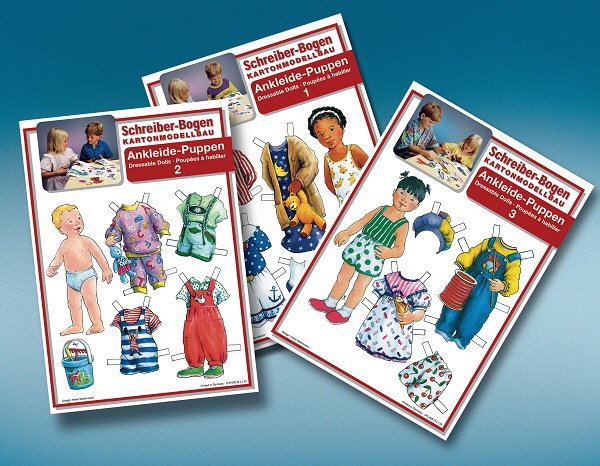 Decades ago it was only girls who occupied themselves with paper dolls, but nowadays often adult women also take great pleasure in the fact that this toy from their childhood still exists. Incidentally, paper dolls are said to have supplied the idea for the Barbie dolls. When the daughter of Barbie’s inventor was playing with paper dolls, Ruth Handler is said to have been inspired by them and developed the idea not to portray a child as the doll, but a figure that looked like a film star. With Barbie’s world fame, its style then once more influenced the design of the paper dolls’ sheets.