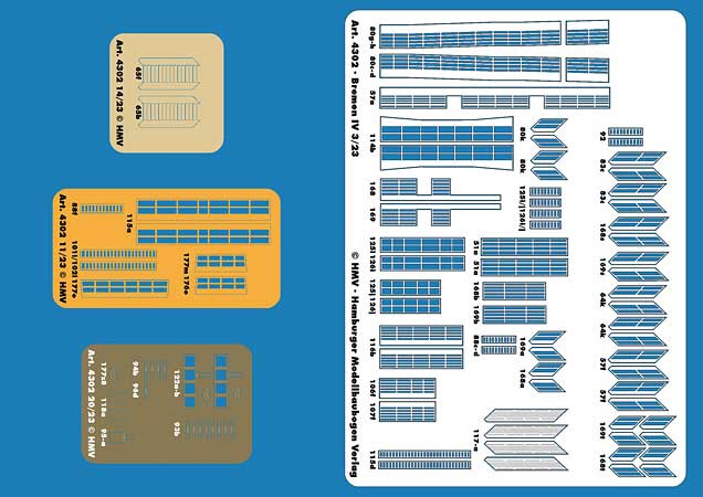 In addition to the Ocean Liner “Bremen” IV (order No. 3302), this laser-cut set Details & Railings is available with: