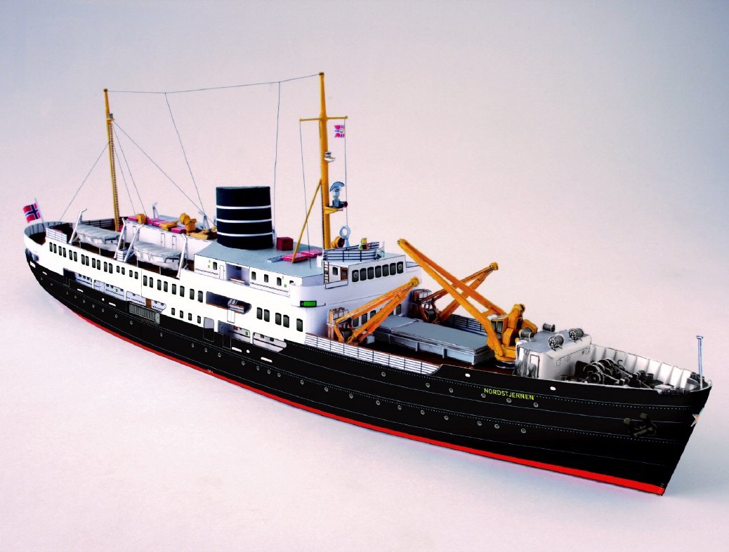 The freight and passenger ship “MS Nordstjernen” from Hamburg Modellbaubogen-Verlag is now available from us as a completely revised new edition. The model features impressive detailed graphics on the ship's sides. The bridge is now equipped with interior fittings. The instructions are available in six languages and as illustrated assembly instructions. A laser-cut kit (No. 4372) is available to match the model.